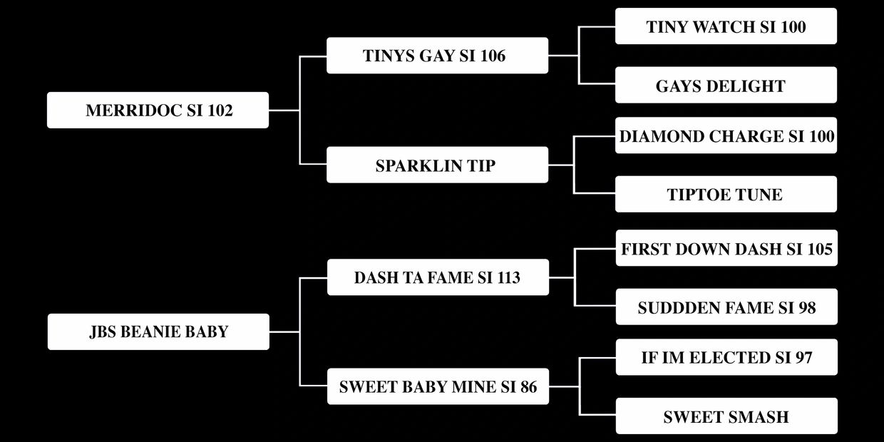 1st Dam, JBS Beanie Baby is a 3/4 sibling to Hat D Doc, who helped take Lana Knight to her first NFR; She is also the 1/2 sibling to Rachael Primm’s gelding Proud Red Pepper who she won the High School National Finals on 2 years in a row!